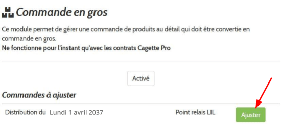 Important : que vous ayez des quantités à ajuster ou pas, il vous faut toujours cliquer la bannière violette « Ajuster la commande en gros », puis cliquer la bannière « Confirmer cette commande ». Sinon la commande de votre groupe ne sera pas prise en compte !