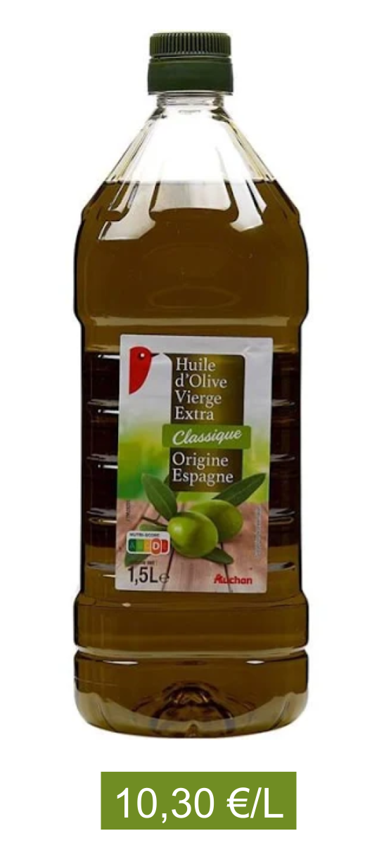 Mais la production d’huile d’olive ne suit pas la demande et le dérèglement climatique l’affecte durement, ainsi pendant deux saisons en Espagne (2022 et 2023), les productions ont été deux fois moins importantes que par le passé. En conséquence les prix ont flambé 😕