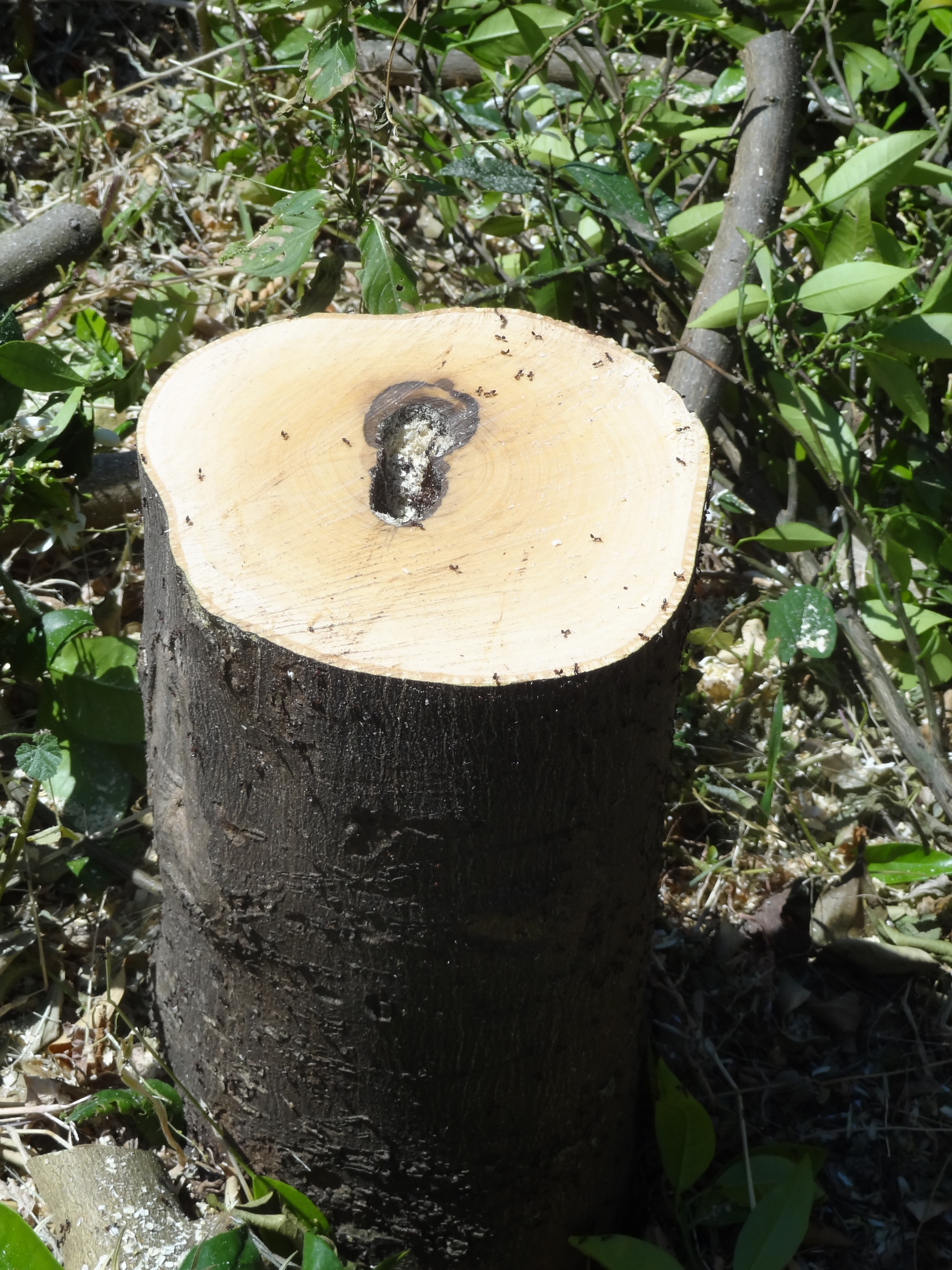 … Pour ne conserver qu’un peu de tronc, qui sera nettoyé de la fourmilière qui l’habitait.