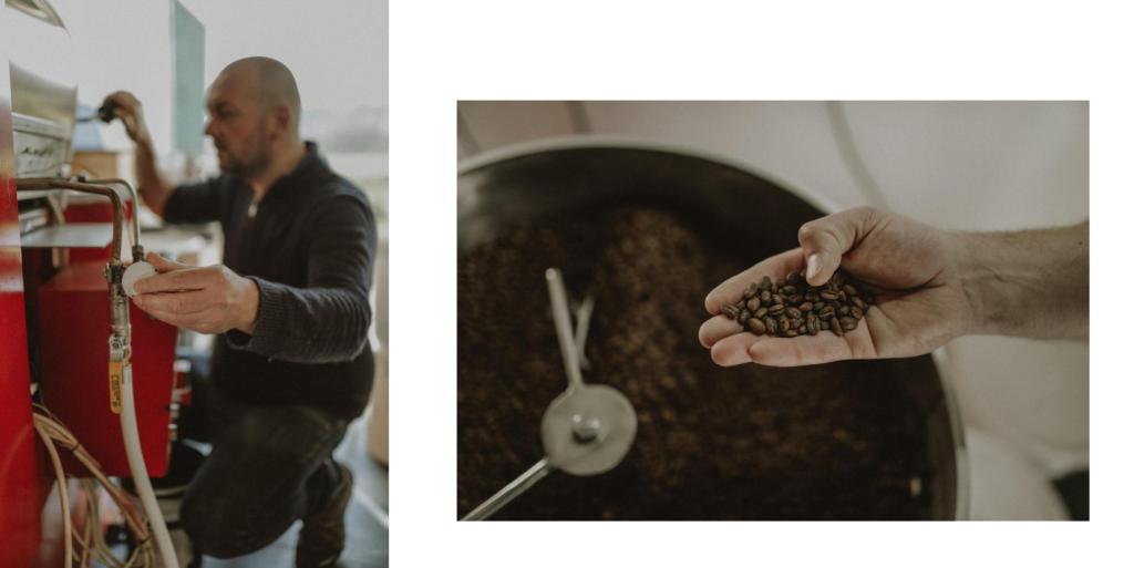 « Nous aimons bien faire les choses différemment. Et nous aimons mettre du sens dans ce que nous faisons. Donc nous faisons avec notre coeur, notre savoir-faire et avec un énorme plaisir ! Et un peu d’humour belge. Ici, au Mont des Cats, on se sent bien. L’air est pur, les cyclistes passent avec le sourire, les promeneurs flânent tranquillement, et les motos scintillent au soleil. Dans notre atelier, nous torréfions nos cafés de spécialité, traçables depuis leur source. Toujours bio, toujours équitables. Nous travaillons aussi l’orge bio des Flandres. »
