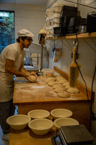 « L’alimentation a toujours occupé une place essentielle dans ma vie. Je me suis toujours senti à ma place en cuisine, dans le geste, dans le partage d’un repas. Attiré par les métiers de bouche, j’ai découvert le travail du pain au levain auprès de boulangers de l’Avesnois. Cette rencontre a marqué un tournant. En 2022, après huit années passées dans le dessin animé, j’ai entrepris une reconversion professionnelle pour devenir boulanger. J’ai obtenu mon CAP Boulanger en 2023, après plusieurs stages dans des maisons engagées de la région, notamment chez : Brood ; Pains Des Paysans ; Le Pain à Contretemps ; Vianney Degruson ; Pitman. Ces expériences m’ont permis de me former auprès d’artisans passionnés, aux pratiques variées mais animés par une même exigence : le goût du travail bien fait et l’amour du bon pain.