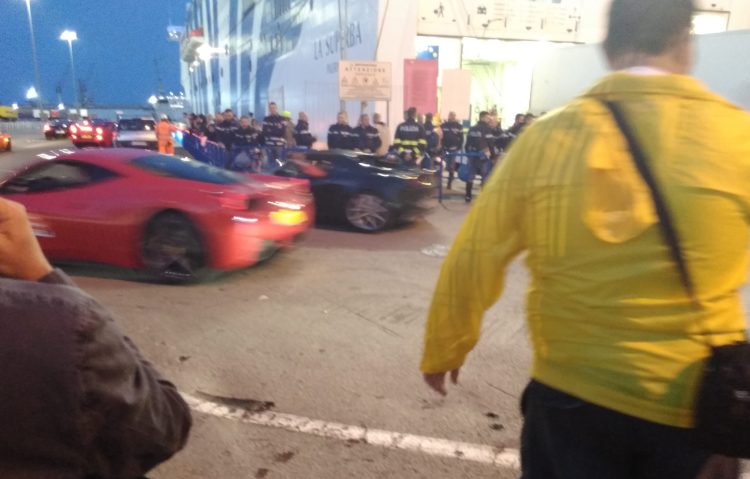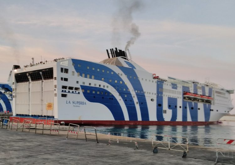 Colette et François, participants du second voyage sont déjà en Sicile, arrivés ce soir à Palerme sur un (très) grand navire – La Superba ! – parti de Gênes une vingtaine d’heures plus tôt. Un nombre impressionnant de véhicules divers en est sorti pendant presqu’une heure, dans un efficace désordre sicilien, dont – liste véridique et non exhaustive ! – : les pullman et camions de plusieurs équipes cyclistes, quelques véhicules – cow-boy, cannette de soda, … – d’une caravane publicitaire, une vingtaine de Ferrari et Lotus participant à un rassemblement.. et un va-et-vient incessant de tracteurs sortant des remorques de semi (remorques) : nos agrumes voyagent ainsi, mais en sens inverse !